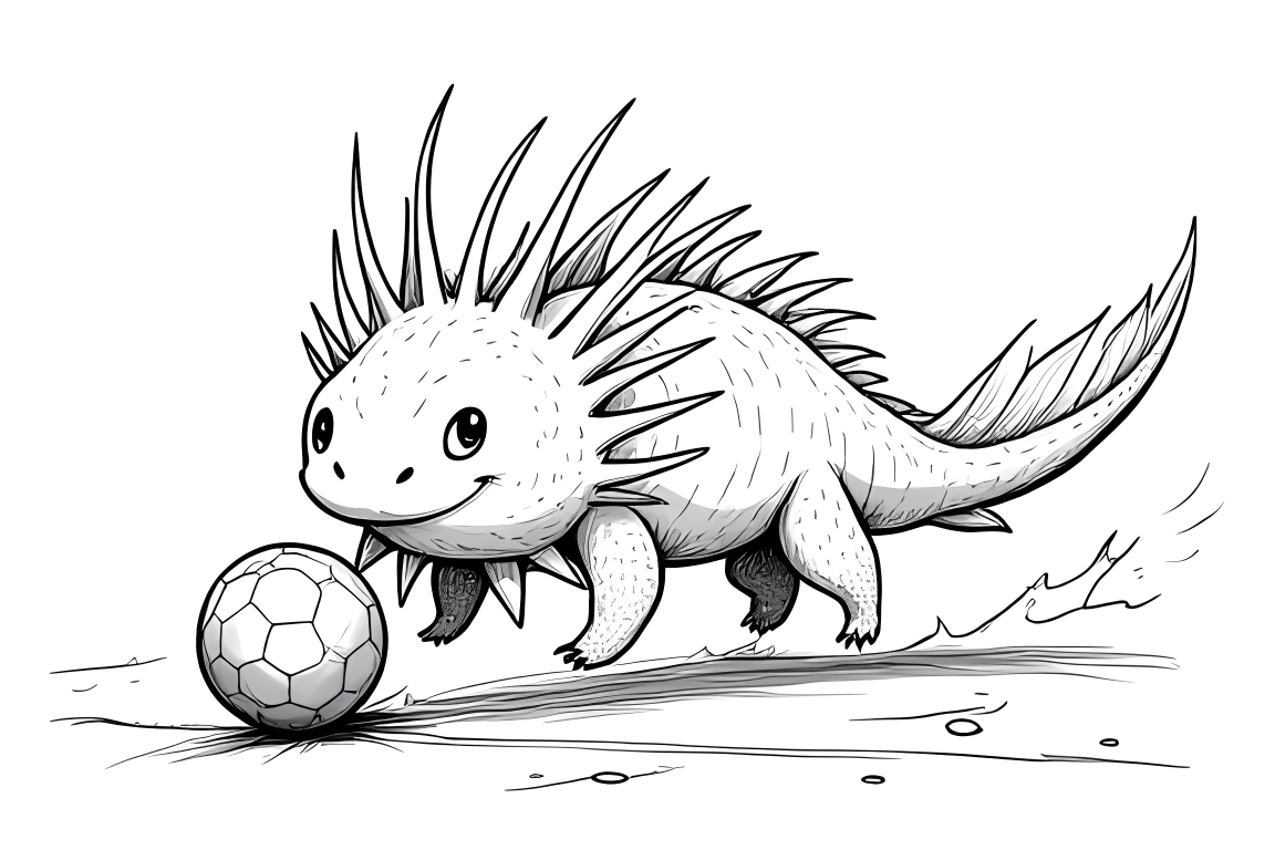 An energetic illustration of an axolotl playing sports. Features moderate details perfect for elementary school children.