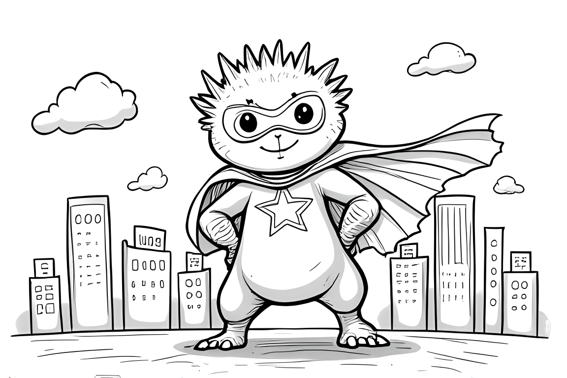 An exciting illustration of an axolotl as a superhero with a cape and mask. Features moderate details perfect for elementary school children.