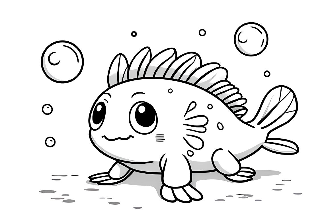 A simple and adorable illustration of a baby axolotl learning to walk. Perfect for the youngest children's first coloring experience with large, easy-to-color shapes.