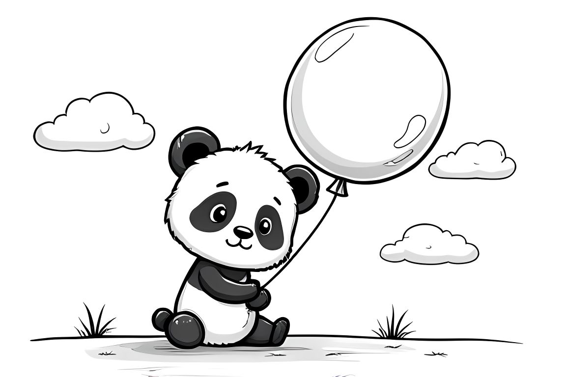 A delightful coloring page featuring a baby panda holding a big balloon, perfect for toddlers' first coloring experience. The large, simple shapes and minimal details make it easy for little hands to color and develop fine motor skills.