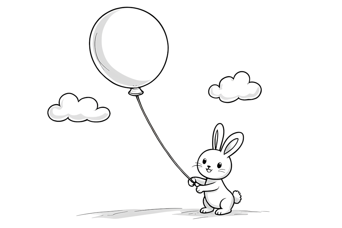 An adorable illustration of a rabbit holding a large balloon. Simple shapes and clear outlines make it perfect for very young children.