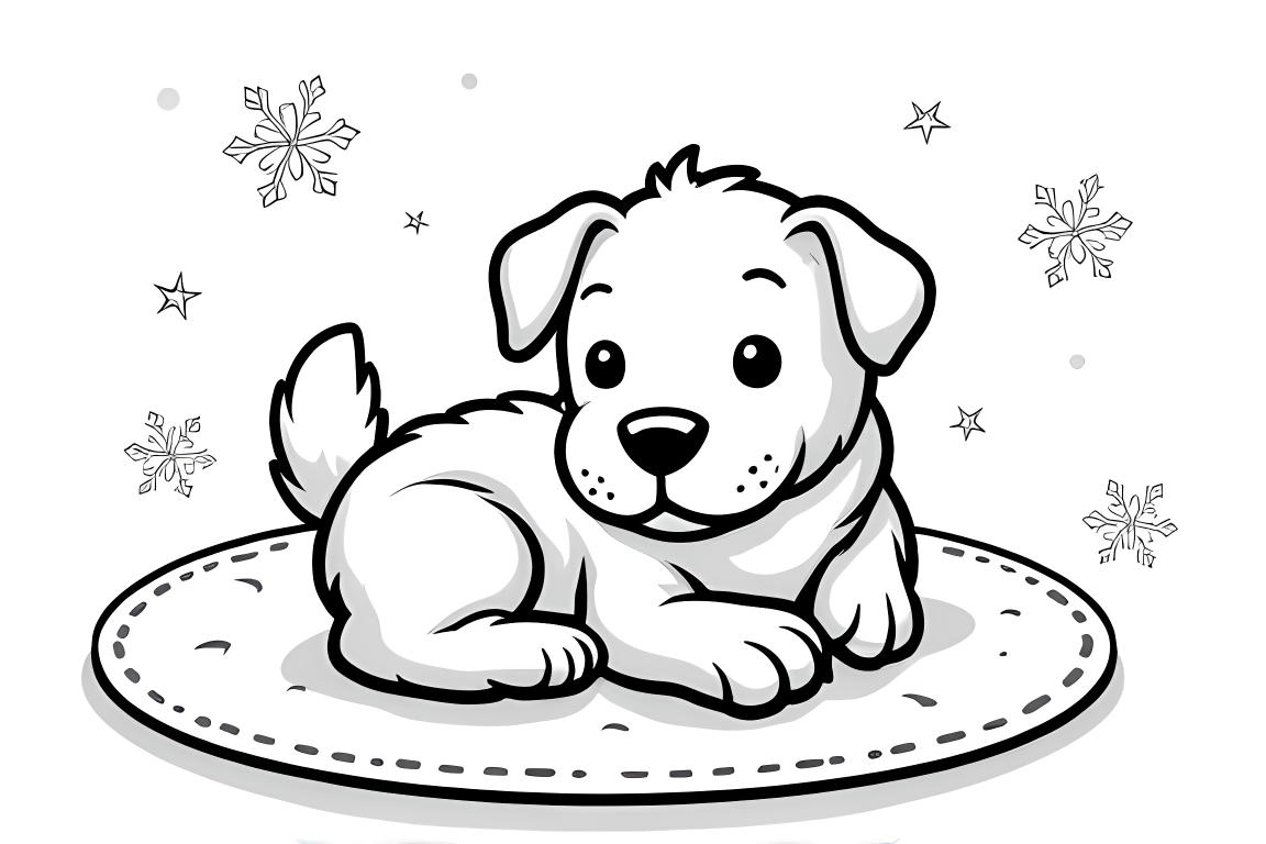 An easy-to-color page of a puppy curled up in a cozy winter blanket. Perfect for young children with its simple lines and spacious design.